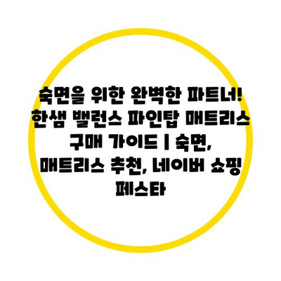 숙면을 위한 완벽한 파트너! 한샘 밸런스 파인탑 매트리스 구매 설명서 | 숙면, 매트리스 추천, 네이버 쇼핑 페스타 에 대해 자주 묻는 질문 TOP 5