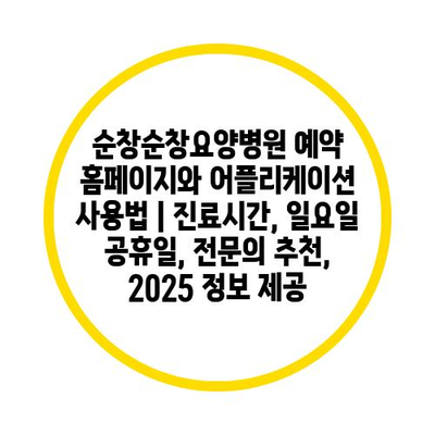 순창순창요양병원 예약 홈페이지와 어플리케이션 사용법 | 진료시간, 일요일 공휴일, 전연락 추천, 2025 정보 제공