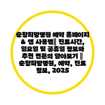 ✅ 순창희망병원의 예약 방법과 진료 정보를 자세히 알아보세요.