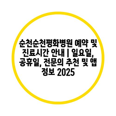 순천순천평화병원 예약 및 진료시간 공지 | 일요일, 공휴일, 전연락 추천 및 앱 정보 2025 에 대해 자주 묻는 질문 TOP 5