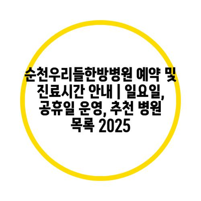 ✅ 순천우리들한방병원의 진료 예약 방법과 운영 시간을 자세히 알아보세요.