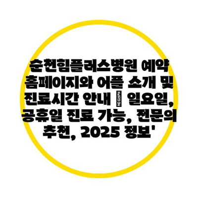 순천힘플러스병원 예약 홈페이지와 어플 소개 및 진료시간 안내 | 일요일, 공휴일 진료 가능, 전문의 추천, 2025 정보’
