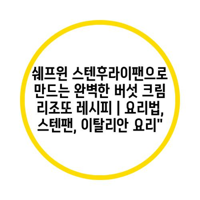 쉐프윈 스텐후라이팬으로 만드는 완벽한 버섯 크림 리조또 레시피 | 요리법, 스텐팬, 이탈리안 요리에 대해 자주 묻는 질문 TOP 5