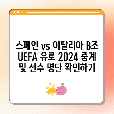 스페인 vs 이탈리아 B조 UEFA 유로 2024 축구 중계 일정과 선수 명단에 대한 심층 분석을 제공합니다. 명승부가 예상되는 경기, 놓치지 마세요!
