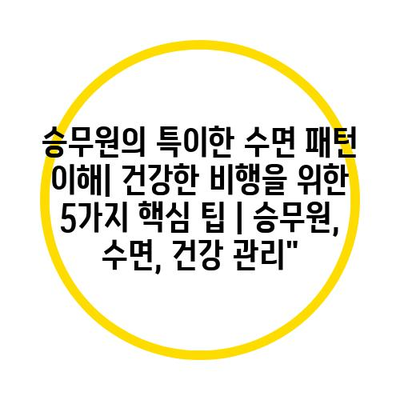 승무원의 특이한 수면 패턴 이해| 건강한 비행을 위한 5가지 핵심 팁 | 승무원, 수면, 건강 관리 에 대해 자주 묻는 질문 TOP 5