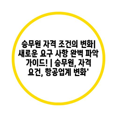 ✅ 승무원의 새로운 자격 요건이 궁금하신가요? 자세히 알아보세요!