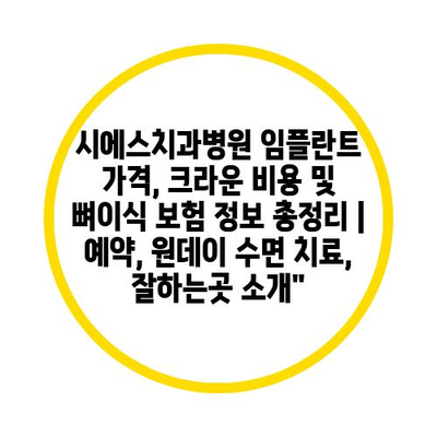 시에스치과병원 임플란트 가격, 크라운 비용 및 뼈이식 보험 정보 총정리 | 예약, 원데이 수면 치료, 잘하는곳 소개”