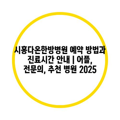 시흥다온한방병원 예약 방법과 진료시간 안내 | 어플, 전문의, 추천 병원 2025