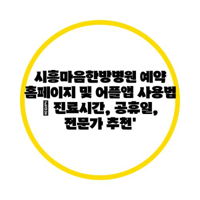 시흥마음한방병원 예약 홈페이지 및 어플앱 사용법 | 진료시간, 공휴일, 전문가 추천’