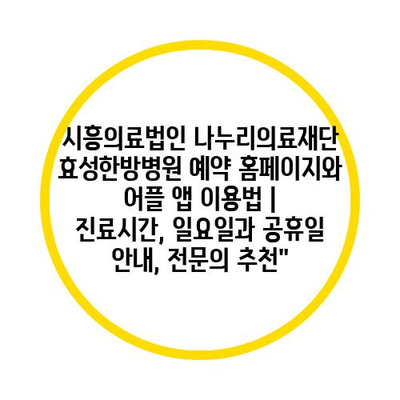 시흥의료법인 나누리의료재단 효성한방병원 예약 홈페이지와 어플 앱 이용법 | 진료시간, 일요일과 공휴일 공지, 전연락 추천”에 대해 자주 묻는 질문 TOP 5