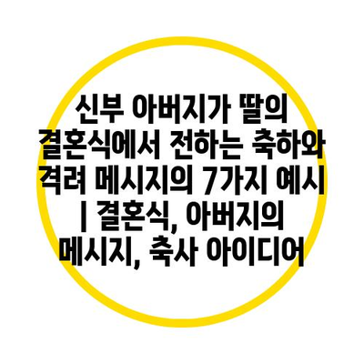신부 아버지가 딸의 결혼식에서 전하는 축하와 격려 메시지의 7가지 예시를 소개합니다. 이 메시지들은 특별한 날에 신부와 신랑에게 큰 힘이 될 것입니다.