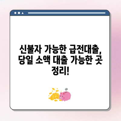 급전대출은 긴급한 상황에서 신속하게 자금을 마련할 수 있는 중요한 금융 서비스입니다. 특히 신용불량자도 당일에 소액을 대출받을 수 있는 곳을 찾는 것이 필수적입니다. 이번 글에서는 개인 신용불량자가 당일 소액 급전을 받을 수 있는 가능한 대출 기관을 정리하여 안내하겠습니다.