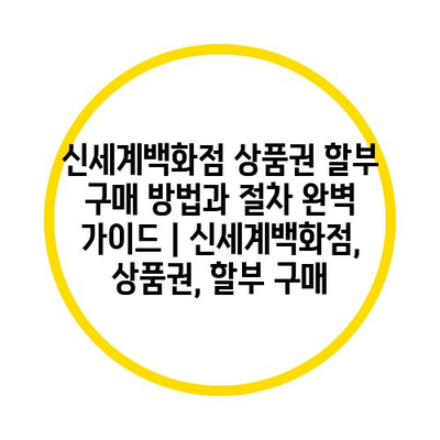 ✅ 신세계 백화점 상품권 할부 구매 방법을 자세히 알아보세요!
