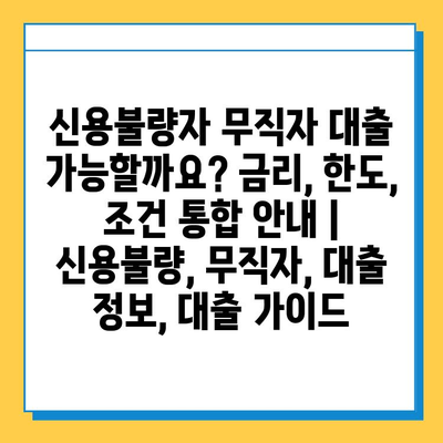 신용불량자 무직자 대출 가능할까요? 금리, 한도, 조건 통합 안내 | 신용불량, 무직자, 대출 정보, 대출 가이드