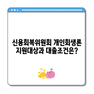 신용회복위원회 개인회생론 지원대상, 대출조건, 신청방법에 대해 자세히 알아보세요. 대출이 필요한 개인회생자에게 유용한 정보입니다.