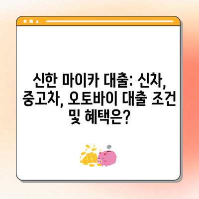 신한 마이카 대출은 신차, 중고차, 오토바이에 대한 저금리 대출 상품입니다. 다양한 대출 옵션과 조건을 상세히 알아보세요.