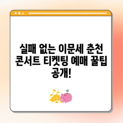 실패 없는 2024 이문세 춘천 콘서트 티켓팅 예매 꿀팁을 통해 성공적인 예약 전략을 알아보세요. 쉽고 빠른 티켓팅 비법이 여기에 있습니다!