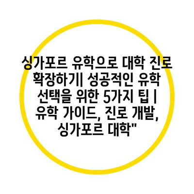 싱가포르 유학으로 대학 진로 확장하기| 성공적인 유학 선택을 위한 5가지 팁 | 유학 가이드, 진로 개발, 싱가포르 대학”