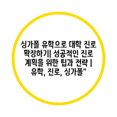 싱가폴 유학으로 대학 진로 확장하기| 성공적인 진로 계획을 위한 팁과 전략 | 유학, 진로, 싱가폴