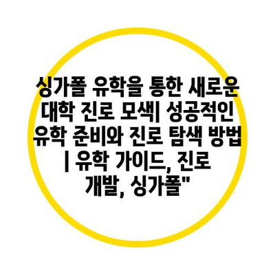 싱가폴 유학을 통한 새로운 대학 진로 모색| 성공적인 유학 준비와 진로 탐색 방법 | 유학 설명서, 진로 개발, 싱가폴
