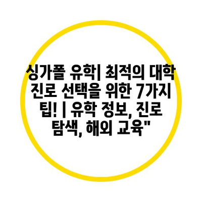 싱가폴 유학| 최적의 대학 진로 선택을 위한 7가지 팁! | 유학 정보, 진로 탐색, 해외 교육
