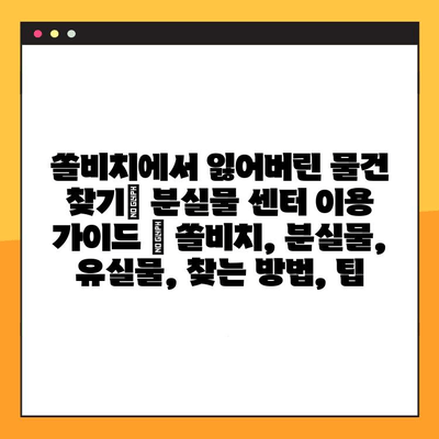 ✅ 쏠비치 분실물 센터 이용 가이드를 통해 잃어버린 물건을 빠르고 효과적으로 찾는 방법을 알아보세요!