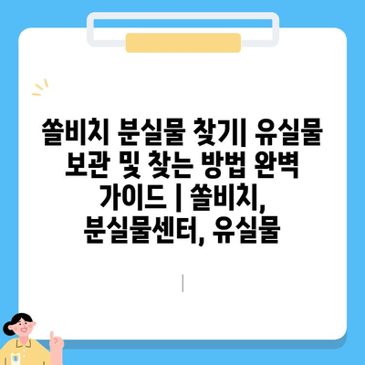 ✅ 쏠비치에서 잃어버린 물건, 어떻게 찾을까요? 쏠비치 분실물센터 이용 방법과 유실물 보관 기간 등 자세한 정보를 확인하세요!