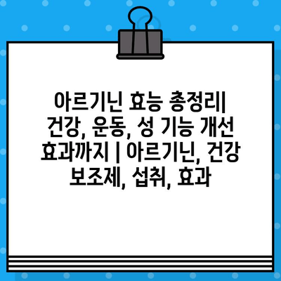 아르기닌 효능 총정리| 건강, 운동, 성 기능 개선 효과까지 | 아르기닌, 건강 보조제, 섭취, 효과