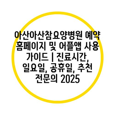 아산아산참요양병원 예약 홈페이지 및 어플앱 사용 설명서 | 진료시간, 일요일, 공휴일, 추천 전연락 2025에 대해 자주 묻는 질문 TOP 5