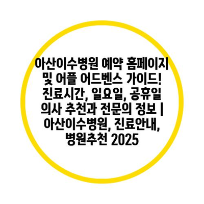 아산이수병원 예약 홈페이지 및 어플 어드벤스 설명서! 진료시간, 일요일, 공휴일 의사 추천과 전연락 정보 | 아산이수병원, 진료공지, 병원추천 2025 에 대해 자주 묻는 질문 TOP 5