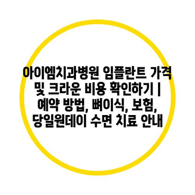 아이엠치과병원 임플란트 가격 및 크라운 비용 확인하기 | 예약 방법, 뼈이식, 보험, 당일원데이 수면 치료 안내