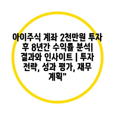 아이주식 계좌 2천만원 투자 후 8년간 수익률 분석| 결과와 인사이트 | 투자 전략, 성과 평가, 재무 계획” 에 대해 자주 묻는 질문 TOP 5