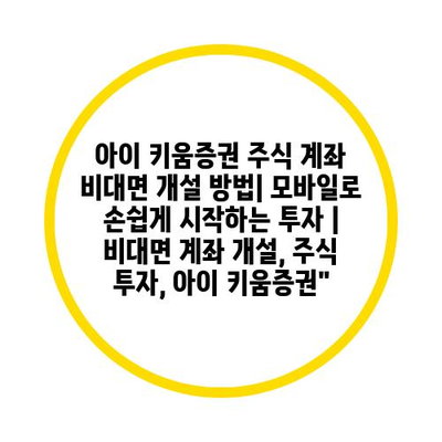 아이 키움증권 주식 계좌 비대면 개설 방법| 모바일로 손쉽게 시작하는 투자 | 비대면 계좌 개설, 주식 투자, 아이 키움증권”