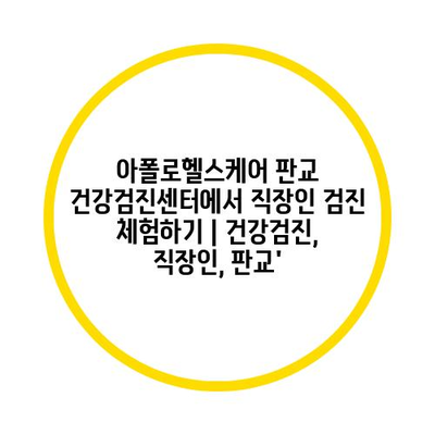 아폴로헬스케어 판교 건강검진센터에서 직장인 검진 체험하기 | 건강검진, 직장인, 판교’ 에 대해 자주 묻는 질문 TOP 5