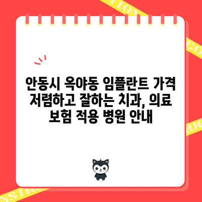 💡 안동시 옥야동에서 가장 저렴한 임플란트 치과 정보를 알아보세요. 💡