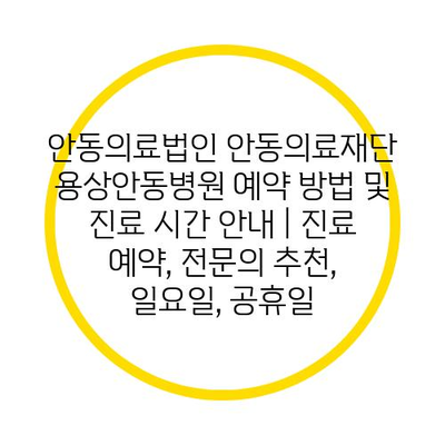 ✅ 안동의료재단의 예약 방법과 진료 시간을 쉽게 알아보세요.