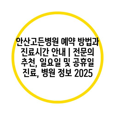 안산고든병원 예약 방법과 진료시간 공지 | 전연락 추천, 일요일 및 공휴일 진료, 병원 정보 2025 에 대해 자주 묻는 질문 TOP 5
