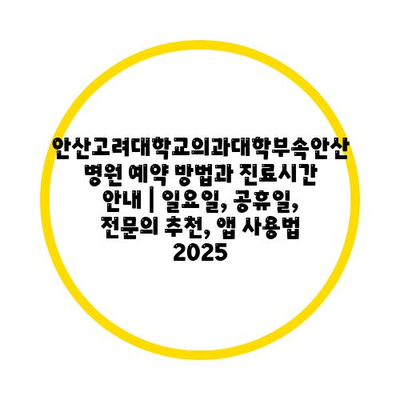 안산고려대학교의과대학부속안산병원 예약 방법과 진료시간 공지 | 일요일, 공휴일, 전연락 추천, 앱 사용법 2025
