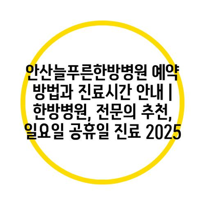 안산늘푸른한방병원 예약 방법과 진료시간 공지 | 한방병원, 전연락 추천, 일요일 공휴일 진료 2025 에 대해 자주 묻는 질문 TOP 5
