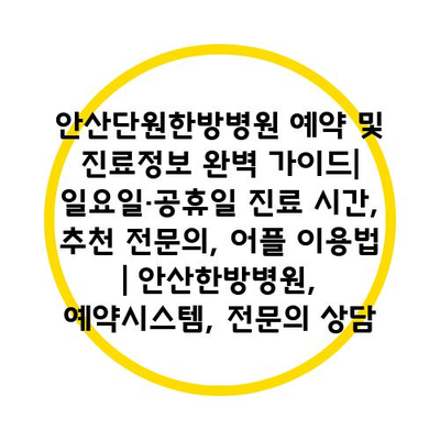 안산단원한방병원 예약 및 진료정보 완벽 설명서| 일요일·공휴일 진료 시간, 추천 전연락, 어플 이용법 | 안산한방병원, 예약시스템, 전연락 상담 에 대해 자주 묻는 질문 TOP 5