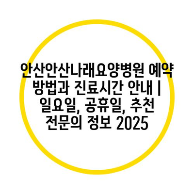 안산안산나래요양병원 예약 방법과 진료시간 공지 | 일요일, 공휴일, 추천 전연락 정보 2025 에 대해 자주 묻는 질문 TOP 5