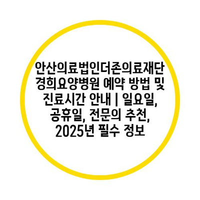 안산의료법인더존의료재단 경희요양병원 예약 방법 및 진료시간 공지 | 일요일, 공휴일, 전연락 추천, 2025년 필수 정보에 대해 자주 묻는 질문 TOP 5