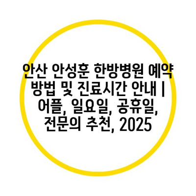 ✅ 안산 안성훈 한방병원의 예약 방법과 진료시간을 지금 바로 알아보세요!