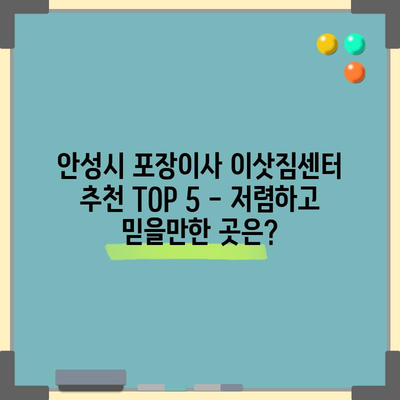 💡 안성시에서 저렴하고 믿을만한 포장이사 센터를 찾아보세요! 💡