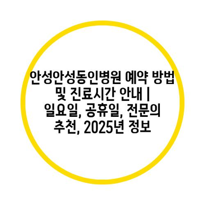 안성안성동인병원 예약 방법 및 진료시간 공지 | 일요일, 공휴일, 전연락 추천, 2025년 정보 에 대해 자주 묻는 질문 TOP 5