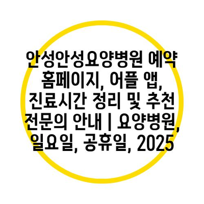 안성안성요양병원 예약 홈페이지, 어플 앱, 진료시간 정리 및 추천 전연락 공지 | 요양병원, 일요일, 공휴일, 2025 에 대해 자주 묻는 질문 TOP 5