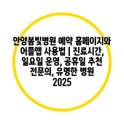 안양봄빛병원 예약 홈페이지와 어플앱 사용법 | 진료시간, 일요일 운영, 공휴일 추천 전연락, 유명한 병원 2025 에 대해 자주 묻는 질문 TOP 5