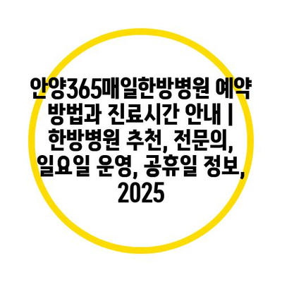 안양365매일한방병원 예약 방법과 진료시간 공지 | 한방병원 추천, 전연락, 일요일 운영, 공휴일 정보, 2025 에 대해 자주 묻는 질문 TOP 5