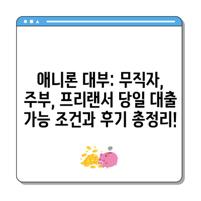 애니론 대부: 무직자, 주부, 프리랜서 당일 대출 가능 조건과 후기 총정리!
