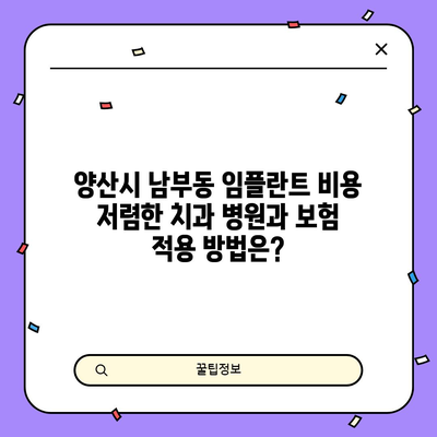 💡 양산시 남부동에서 저렴한 임플란트 치과를 찾아보세요. 보험 적용 방법도 안내합니다! 💡